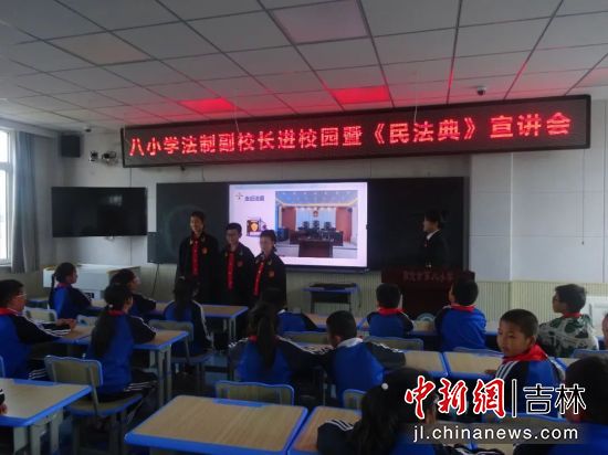 中新網(wǎng)吉林新聞6月1日電 (譚偉旗 孟鴿)為加大《中華人民共和國(guó)民法典》宣傳普及力度,營(yíng)造尊法、學(xué)法、守法、用法的良好校園氛圍,近日,敦化基層林區(qū)法院民事審判團(tuán)隊(duì)法官干警走進(jìn)敦化市第八小學(xué),深入課堂為師生們開展了一場(chǎng)《民法典》知識(shí)宣傳教育主題講座。