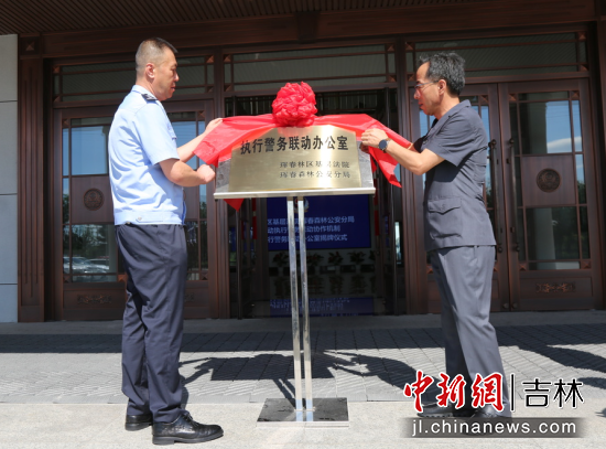 當(dāng)天,琿春林區(qū)法院黨組書記、院長鄭國榮與琿春森林公安分局黨委書記、局長李本三共同為“執(zhí)行警務(wù)聯(lián)動辦公室”揭牌。兩家單位黨委成員以及40余位干警參加了揭牌儀式。揭牌儀式后,大家共同觀摩“執(zhí)行警務(wù)聯(lián)動辦公室”操作流程。