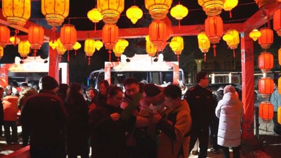 夜幕初臨的長白山文化博覽城,早已被濃濃的節(jié)日氛圍包裹。成排的紅燈籠高高掛起,趣味燈謎懸于半空,構(gòu)成一道亮麗的風(fēng)景。市民和游客踴躍參與互動競猜,或低頭凝神思索,或與家人朋友輕聲討論,沉浸式體驗傳統(tǒng)民俗的樂趣。