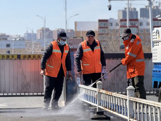 行動中,工人們對道路兩側的雨水井篦表面的油污進行刷洗,使用火堿配合高壓水槍,逐一清除積垢,確保井篦子表面見本色、無油漬。對道路中間的隔離護欄,采取機械清洗與人工擦拭相配合的方式,護欄清洗車對大面積護欄進行快速清洗,工人們隨后對護欄底部、端頭等機械難以覆蓋的位置進行人工補擦,清除冬季積塵和頑固污漬確保不留死角。