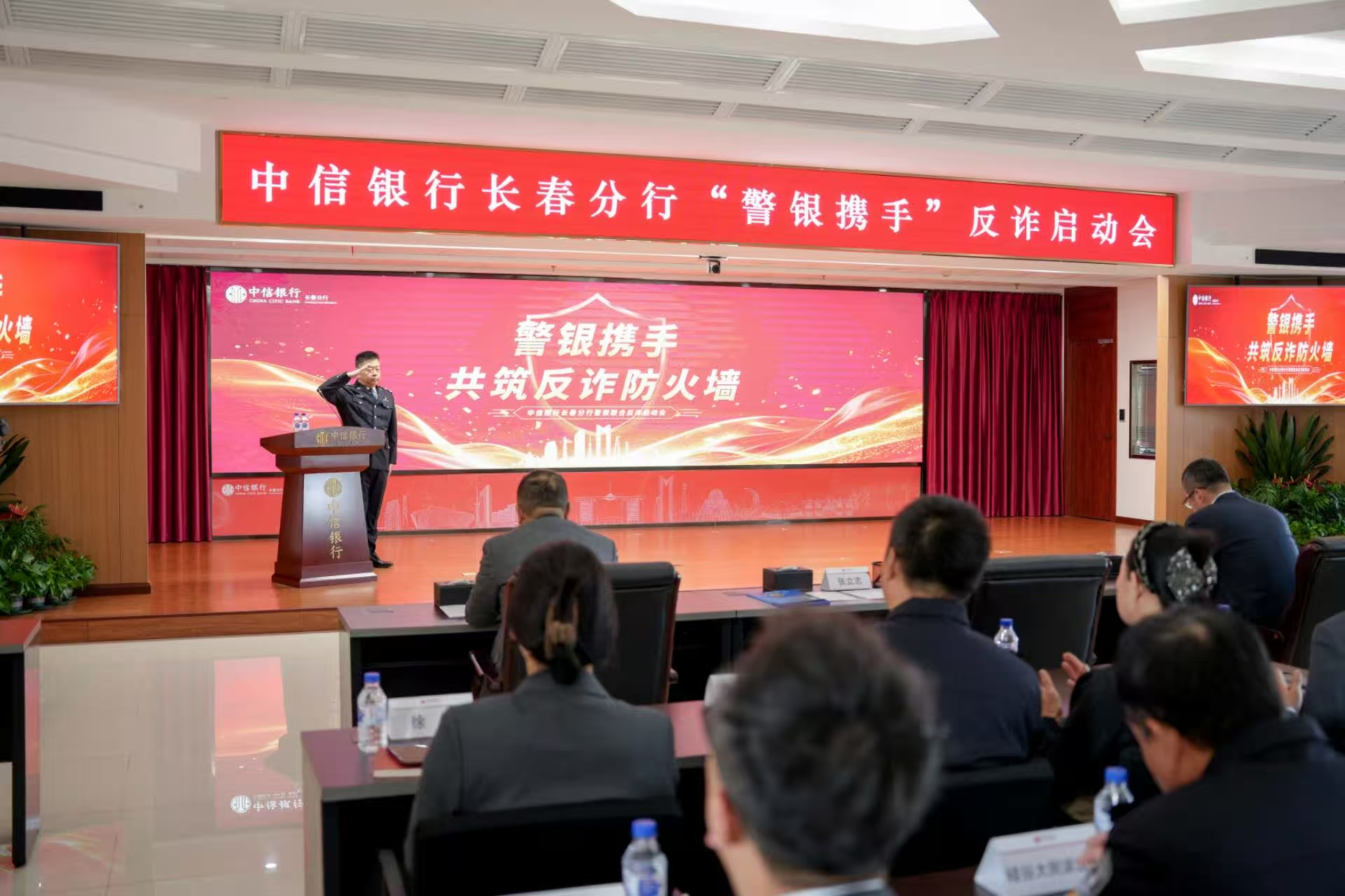 長春分行黨委書記代表中信銀行致辭:中信銀行長春分行將始終踐行“金融為民”理念,堅決履行反詐管理的主體責(zé)任。同時,積極聯(lián)合公安、監(jiān)管、社區(qū)等多方力量,在反詐宣傳、勸阻受騙群眾、打擊涉詐犯罪等方面凝聚強大合力,推動全社會共同參與反詐的大格局形成。