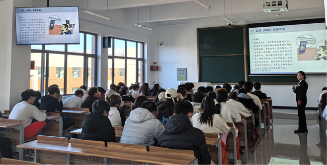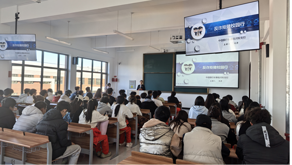 活動(dòng)現(xiàn)場,臨河街支行的工作人員結(jié)合高校校園詐騙的高發(fā)特點(diǎn),以通俗易懂的語言為師生們帶來了一場干貨十足的反詐宣講。宣講環(huán)節(jié)中,工作人員首先從“什么是電信網(wǎng)絡(luò)詐騙”切入,系統(tǒng)講解了電信網(wǎng)絡(luò)詐騙的定義、常見類型及隱蔽性、迷惑性特點(diǎn),讓師生們對這類違法犯罪行為建立起清晰認(rèn)知。隨后,通過“以案說詐”的形式,工作人員選取了近年來高發(fā)的校園貸、刷單返利、冒充老師同學(xué)借錢、虛假購物退款等典型詐騙案例,深入剖析了詐騙分子的作案手法、話術(shù)陷阱以及受害者的受騙心理,用真實(shí)案例敲響安全警鐘,讓師生們直觀感受詐騙的危害性。