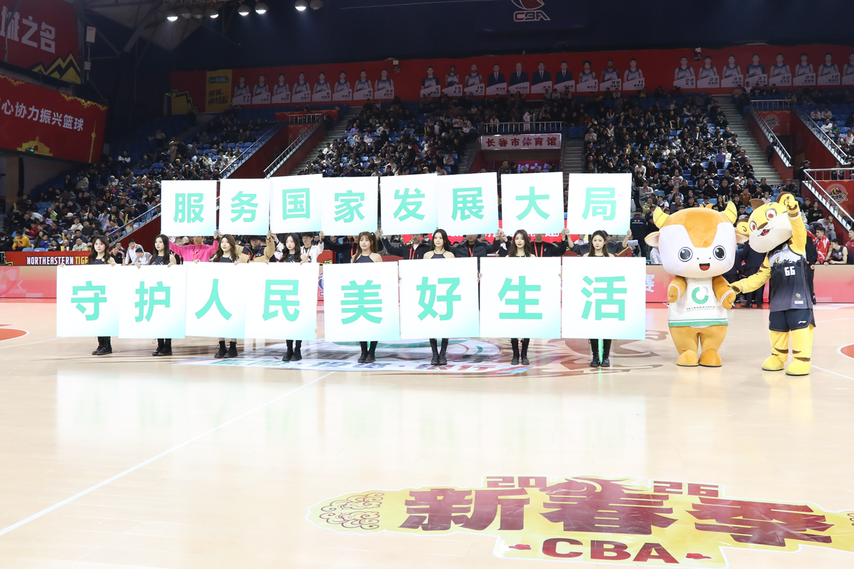 賽場中央,中國人壽專屬展示環(huán)節(jié)成為節(jié)間亮點。主持人熱情開場:“歡迎來到由CBA聯(lián)賽官方主贊助商中國人壽帶來的互動環(huán)節(jié)。中國人壽為CBA球員助力打call!”伴隨著動感的音樂,16名啦啦隊員率先登場,在中圈帶來活力舞蹈表演,表演結束后,隊員們每人舉起一張展示牌,共同拼組出“服務國家發(fā)展大局,守護人民美好生活”的企業(yè)使命,東北虎俱樂部吉祥物與中國人壽壽險牛犇犇吉祥物攜手登場,在場內(nèi)舞動,萌趣的姿態(tài)與整齊的展示相映成趣,瞬間點燃現(xiàn)場的氛圍。表演落幕,“一個國壽,一生守護!感謝中國人壽為我們帶來的精彩時刻,中國人壽,相知多年,值得托付,要投就投中國人壽!”的話語響徹賽場,將品牌的守護理念傳遞給現(xiàn)場的每一位觀眾。
