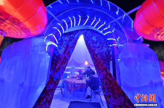 2月4日,在吉林長春世界雕塑園內(nèi),一座晶瑩剔透的冰屋中熱氣繚繞,來自上海的游客圍坐在冰桌前,品嘗著沸騰的火鍋,親身體驗“冰火兩重天”的奇妙感受!埇 攝