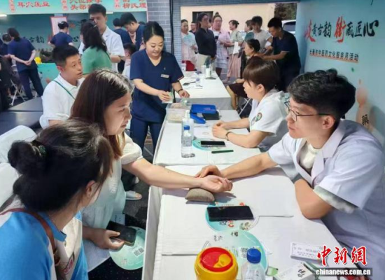 望、聞、問、切……本月6日晚,16位中醫(yī)專家現(xiàn)場坐診,每張桌子前都有不少年輕人排隊。“后頸略微發(fā)涼,你的血液循環(huán)不通暢!奔珙i痛是上班族李思宏的“熬夜后遺癥”,經(jīng)過一番推拿身體如釋重負,“很有效果,我能聽到關(guān)節(jié)發(fā)出的‘咔咔’聲,這回晚上終于能睡個好覺了。”