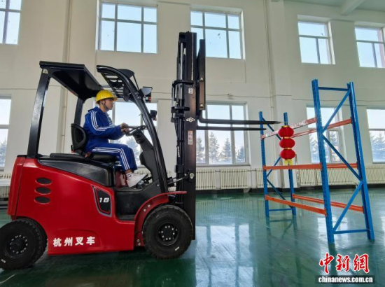 吉林學生展“毫米級”絕技:叉車摘掛紅燈籠