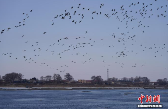 中新網(wǎng)吉林3月16日電 (記者 石洪宇)連日來,豆雁、鴻雁等萬余只鳥類翱翔于吉林省蛟河市郊外,場面十分壯觀。蛟河市官方介紹,當(dāng)?shù)刈鳛楹蝤B遷徙的重要“驛站”,今年過境的雁類數(shù)量有所增加,時間與往年相仿。