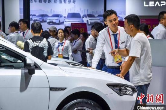9月13日,海南?冢嚹V嚭D辖鹎镘囌。當(dāng)日,因超強(qiáng)臺(tái)風(fēng)“摩羯”而兩度延期的2024海南金秋車展暨智能網(wǎng)聯(lián)新能源車展在?谂e行。作為臺(tái)風(fēng)災(zāi)后海南的首場(chǎng)車展,本次展出面積達(dá)5萬(wàn)平方米,共有近百個(gè)汽車品牌參展,其中新能源車型占比70%。中新社記者 駱云飛 攝