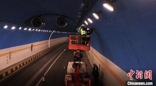 邢真真正在和同事檢測高速隧道 李丹 攝