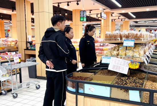 此外,針對超市內貨架琳瑯滿目的預包裝食品和散裝食品,執(zhí)法人員進行了“地毯式”排查。重點檢查預包裝食品是否過期、標簽標識是否規(guī)范;散裝食品是否清晰地標明食品名稱、生產日期、保質期等信息,全力保障各族群眾消費環(huán)境安全。