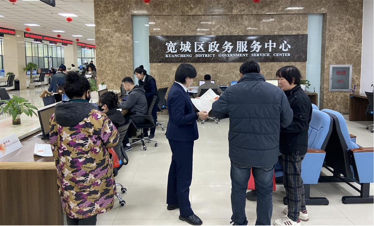 1日,記者在寬城區(qū)政務(wù)服務(wù)中心看到,這里的服務(wù)細節(jié)滿滿,剛進入大門,地面就貼有導視地標,辦事項目一目了然,左右兩側(cè)各有一個殘疾人(視障、聽障)服務(wù)指示牌,自助服務(wù)區(qū)旁擺放著數(shù)臺輪椅,還專門為工作日不能來辦業(yè)務(wù)的個人和企業(yè)推出周末預約服務(wù)。