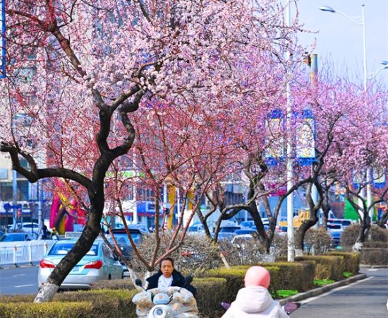 走在延吉的大街小巷,無需刻意尋覓賞花地,抬頭便是滿眼繁花。京桃率先掙脫寒冬的沉寂,在尚未抽芽的枝丫上,綻放出一簇簇、一團團粉嫩的花朵,淡粉、柔白、淺紫的花瓣層層疊疊,薄如蟬翼,輕盈又嬌嫩,嫩黃色的花蕊藏在花瓣間,透著清淺的芬芳。