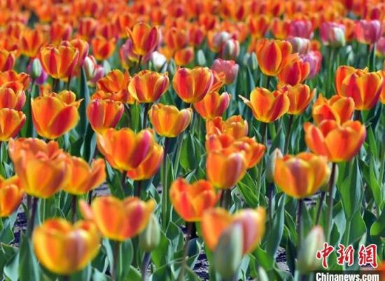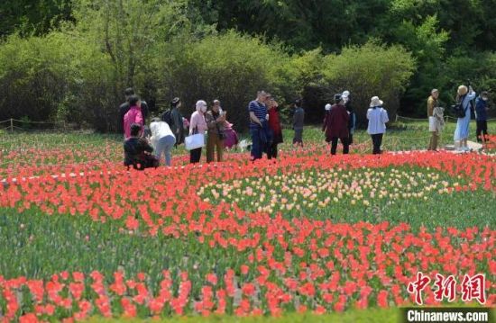 40余萬(wàn)株郁金香迎來(lái)盛花期。 40余萬(wàn)株郁金香迎來(lái)盛花期,艷麗奪目。 40余萬(wàn)株郁金香迎來(lái)盛花期,艷麗奪目。 市民在公園賞花。 市民在公園賞花拍照。