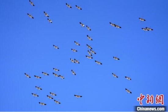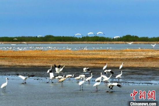 立夏季節(jié)在莫莫格濕地中停歇的白鶴種群!∨岁申拧z