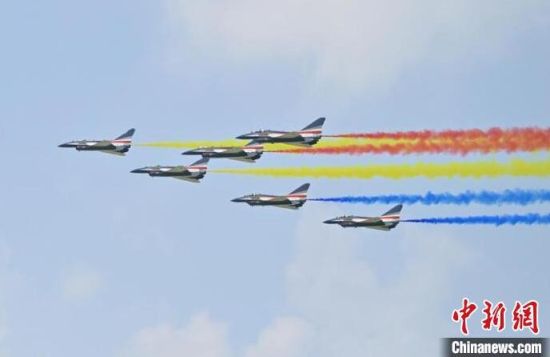 八一飛行表演隊(duì)在進(jìn)行飛行表演。張瑤 攝