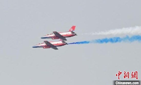 紅鷹飛行表演隊(duì)在進(jìn)行飛行表演。張瑤 攝