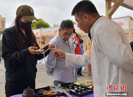 9月19日,在長春文廟廣場上,“非遺”手藝人向市民展示作品。當(dāng)天,長春市南關(guān)區(qū)金秋文化旅游節(jié)啟幕,具有地方特色的非遺項(xiàng)目匯聚,向現(xiàn)場市民近距離展示多樣的非遺魅力。