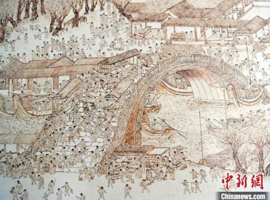 王巖用烙畫技術(shù)臨摹的明代清明上河圖。