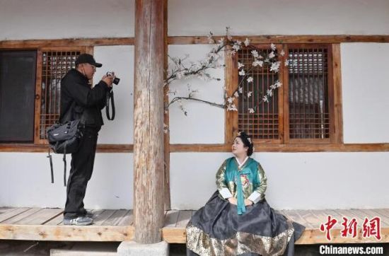 4月7日,在吉林省延邊州延吉市的中國(guó)朝鮮族民俗園內(nèi),游客身著朝鮮族服飾拍照。延邊是中國(guó)唯一的朝鮮族自治州和最大的朝鮮族聚居地,近年來延邊旅游持續(xù)火爆,朝鮮族服飾旅拍也成為最受歡迎的旅游項(xiàng)目之一。