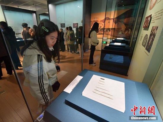 市民在觀賞新石器時代良渚文化玉錐形器。