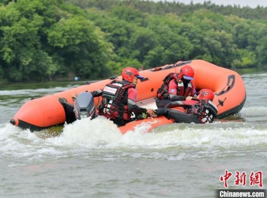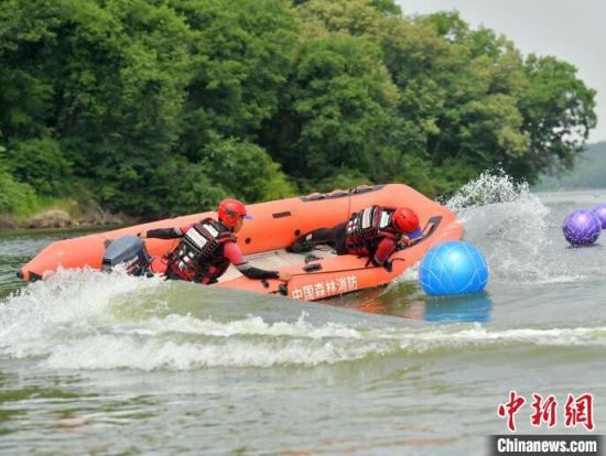 6月21日,吉林長春,消防救援人員正在進行水域救援翻舟自救科目訓(xùn)練。目前,吉林省已進入汛期,吉林省森林消防總隊特勤大隊緊貼實戰(zhàn)水域救援任務(wù),開展水域救援訓(xùn)練。消防救援人員重點對橡皮艇操控、操舟繞標、翻船自救、O型救援等內(nèi)容開展訓(xùn)練,全面做好防汛搶險等綜合性救援任務(wù)準備。(完)