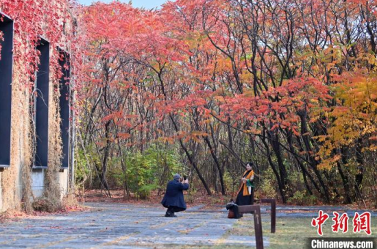 10月17日,在長(zhǎng)春水文化生態(tài)園,游客在拍照留念。近年來(lái),隨著城市發(fā)展,長(zhǎng)春很多老工廠陸續(xù)遷往新址,閑置的老廠房則被改建成具有紀(jì)念意義的工業(yè)遺址公園。長(zhǎng)春水文化生態(tài)園原為長(zhǎng)春凈水廠,該廠遺留的設(shè)施、廠房與植物組成獨(dú)特的秋景,吸引眾多游人參觀。中新社記者 張瑤 攝