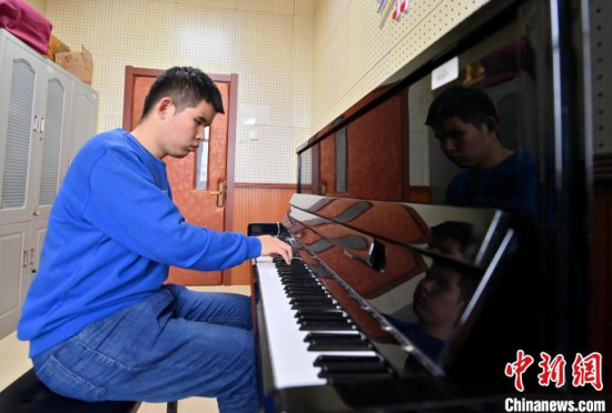 10月21日,吉林長春,袁浩然在直播。2004年出生的袁浩然是長春大學(xué)特教學(xué)院鋼琴表演專業(yè)的學(xué)生,雖然患有先天視力障礙,但他卻用音樂詮釋人生,歌頌美好生活。他將自己的作品傳到網(wǎng)上,獲得了550.4萬的點(diǎn)贊量。袁浩然說,他要用熱愛的音樂,為大家傳遞溫暖和力量。中新社記者 張瑤 攝