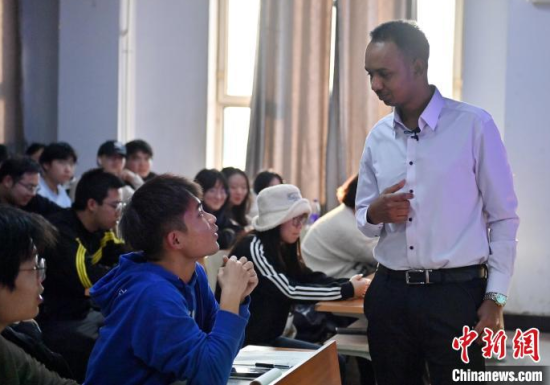 11月6日,在長春師范大學(xué),馬宋在上課。1993年出生的馬宋來自蘇丹,畢業(yè)于中國地質(zhì)大學(xué)計算機技術(shù)與科學(xué)專業(yè),畢業(yè)后在福建一家企業(yè)做IT工程師。喜歡教學(xué)的馬宋,去年來到長春師范大學(xué)“跨界”成為一名計算機專業(yè)的老師。馬宋說,他和中國的年輕人相處得非常愉快,未來他想扎根在這里,為學(xué)生們傳道授業(yè)解惑。中新社記者 張瑤 攝