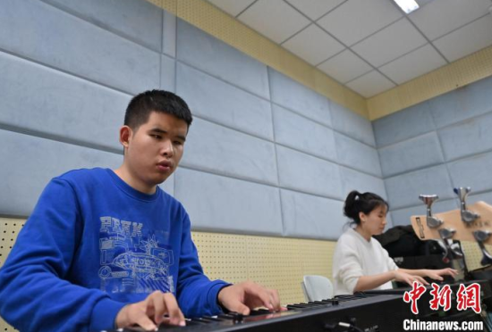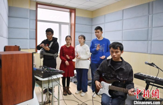 11月14日,吉林長(zhǎng)春,“逐暗逐光”樂隊(duì)成員在交流排練細(xì)節(jié)。長(zhǎng)春大學(xué)特教學(xué)院有一支名叫“逐暗逐光”的樂隊(duì),樂隊(duì)成員都是視障學(xué)生。他們因音樂相聚在一起,用音樂去驅(qū)逐黑暗追逐光明。中新社記者 張瑤 攝