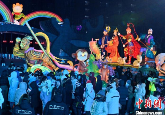 12月5日,在長(zhǎng)春市動(dòng)植物公園,“孫悟空”在與游客互動(dòng)。當(dāng)天,該園“西游記主題樂園”重新開放,吸引全國(guó)各地游客"沉浸式”體驗(yàn)中國(guó)傳統(tǒng)文化。  中新社記者 張瑤 攝