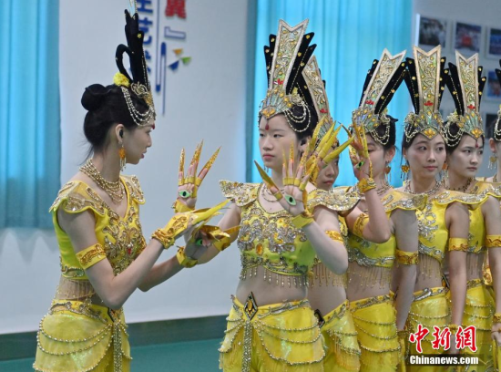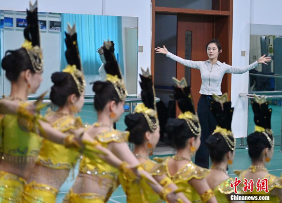 4月22日,在長春大學(xué)特殊教育學(xué)院,學(xué)生們在排練《千手觀音》。這所學(xué)院擁有一支由29名聽障學(xué)生組成的舞蹈團(tuán)隊(duì)。他們因?qū)ξ璧傅臒釔鄱奂谝黄,在無聲的世界中舞出他們精彩的人生篇章。中新社記者 張瑤/攝