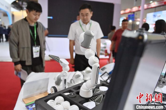 5月23日,第63屆高等教育博覽會(huì)(簡稱“高博會(huì)”)在長春開幕。本屆高博會(huì)由展覽展示與特色活動(dòng)兩部分組成。其中,展覽展示面積12萬平方米,參展院校和企業(yè)6000余家。圖為高博會(huì)展覽現(xiàn)場,智能人形機(jī)器人吸引參觀者。中新社記者 張瑤 攝