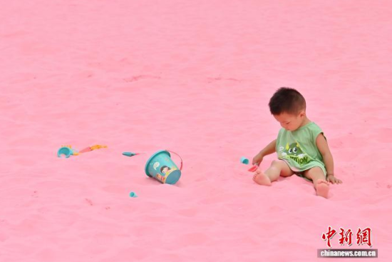7月24日,長春市一處人工打造的粉沙灘吸引眾多游客前來打卡。這片沙灘呈現(xiàn)出夢(mèng)幻的粉色,搭配周邊綠植和休閑設(shè)施,營造出浪漫氛圍。中新社記者 張瑤 攝