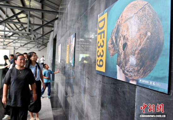 8月7日,記者拍攝的東北淪陷時(shí)期遼源礦工墓陳列館的綜合陳列館——遼源礦工紀(jì)念館。該陳列館是日本侵華期間強(qiáng)占東北、掠奪資源、殘害中國(guó)礦工的重要罪證!熬乓话恕笔伦兒螅湛茉诖睡偪耖_(kāi)采煤礦14年,導(dǎo)致8萬(wàn)至10萬(wàn)礦工慘死。如今,這片占地6萬(wàn)平方米的遺址內(nèi),197具完整遺骸和20余具零散遺骨靜靜陳列,無(wú)聲控訴著侵略者的罪行。中新社記者 張瑤 攝