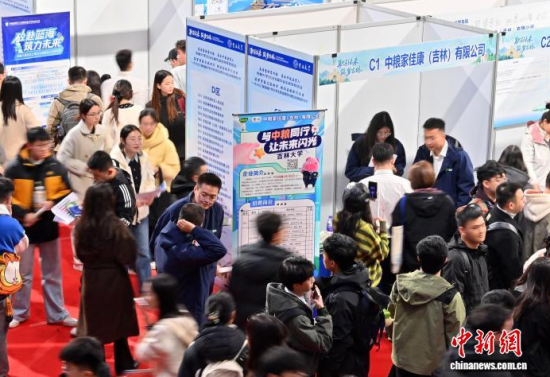 10月28日,吉林省規(guī)模最大的校園招聘活動(dòng)——吉林大學(xué)2026屆畢業(yè)生秋季雙選會(huì)在長(zhǎng)春舉行,F(xiàn)場(chǎng),來自全國1100多家企業(yè)提供近6萬個(gè)崗位,吸引吉林省68所高校的2萬余名畢業(yè)生參與。中新社記者 張瑤 攝