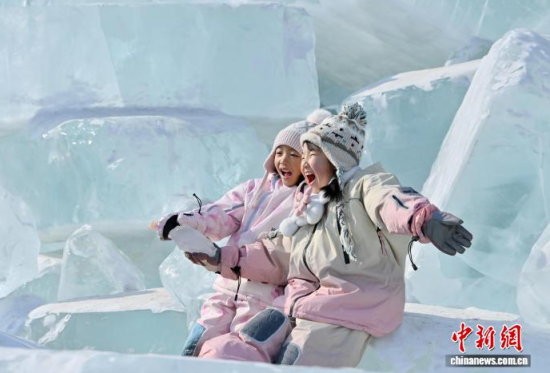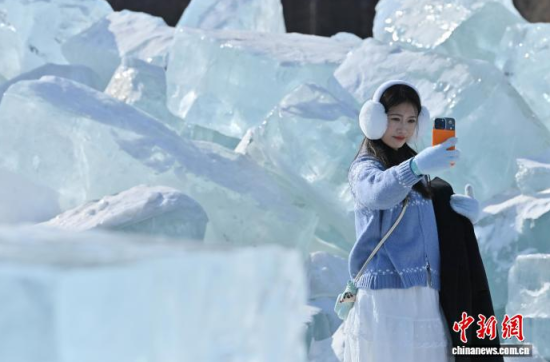 2月9日,在長(zhǎng)春凈月潭國(guó)家森林公園內(nèi),由水庫(kù)天然冰塊堆砌而成的“藍(lán)冰”景觀,吸引市民打卡拍照。“藍(lán)冰”是指致密堅(jiān)硬的冰,因冰內(nèi)部空氣被擠掉而變得晶瑩透徹,這時(shí)陽(yáng)光中波長(zhǎng)較短的藍(lán)光被致密堅(jiān)厚的冰層散射,冰塊便呈現(xiàn)出水晶般美麗的藍(lán)色。中新社記者 張瑤 攝