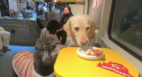 長(zhǎng)春:寵物在火車車廂主題餐廳品年味