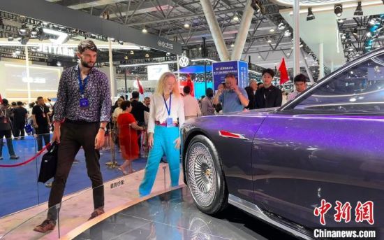 7月16日,外商在第21屆長(zhǎng)春國際汽車博覽會(huì)上參觀中國紅旗汽車。郭佳 攝