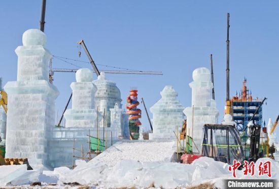 12月11日,吉林長(zhǎng)春,長(zhǎng)春冰雪新天地正在加速施工!≈行律缬浾 張瑤 攝