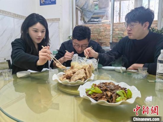 南方游客在吉林市品嘗鍋包肉!∈橛 攝