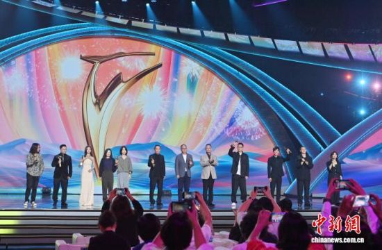 2024年9月1日晚,第十九屆中國長春電影節(jié)閉幕式上,獲獎者集體合影留念。(資料圖) 中新社記者 張瑤 攝