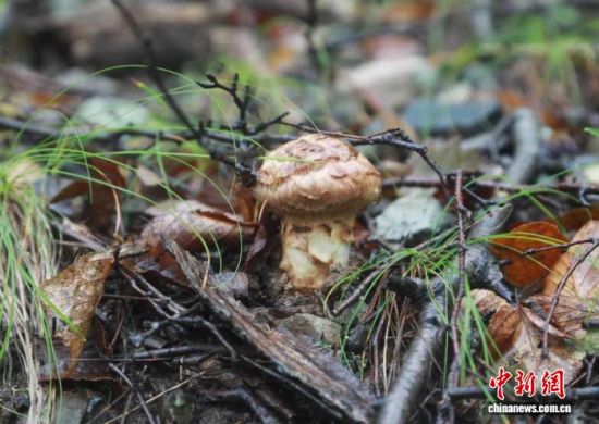 9月20日,吉林延邊,和龍林業(yè)局青山林場的松茸破土而出!±钴娍 攝