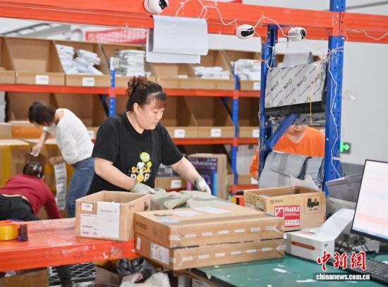 2025年5月30日,在位于琿春的跨境電商保稅分撥中心,工作人員在分揀商品!(資料圖)張瑤 攝